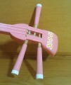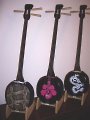ピンクと黄色でかわいい三線に仕上がっています。