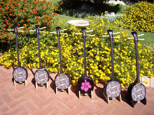 名も知れぬ蛇の皮を張り、 ネクタイをばらしてティーガ(胴巻き)にしたそうです。